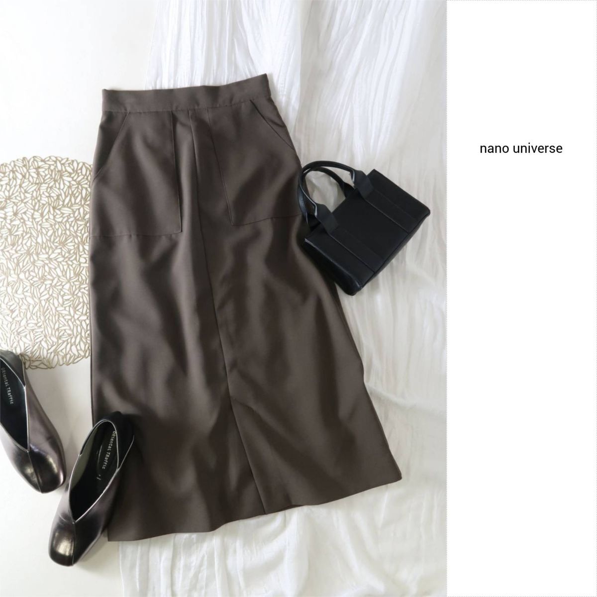 - ナノ ユニバース nano universe☆洗える バックゴム スリットタイトスカート 36サイズ☆M-B 5825