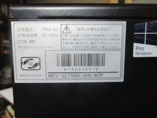 > 10..mouse computer MDV-GZ7700S-SH2-W7P.. Core i7-6700 3.4GHz .メモリ16GB .HDD 500GB .ブルーレイBH14NS48 . GTX970