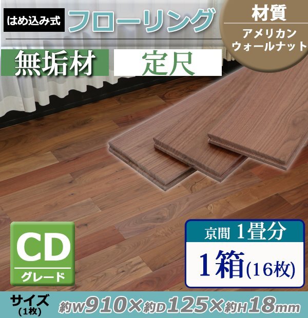 > 送料無料 フローリング 床材 アメリカンウォールナット 無垢 CDグレード 定尺 はめ込み 1箱 京間 1畳分 約1.82平米 16枚