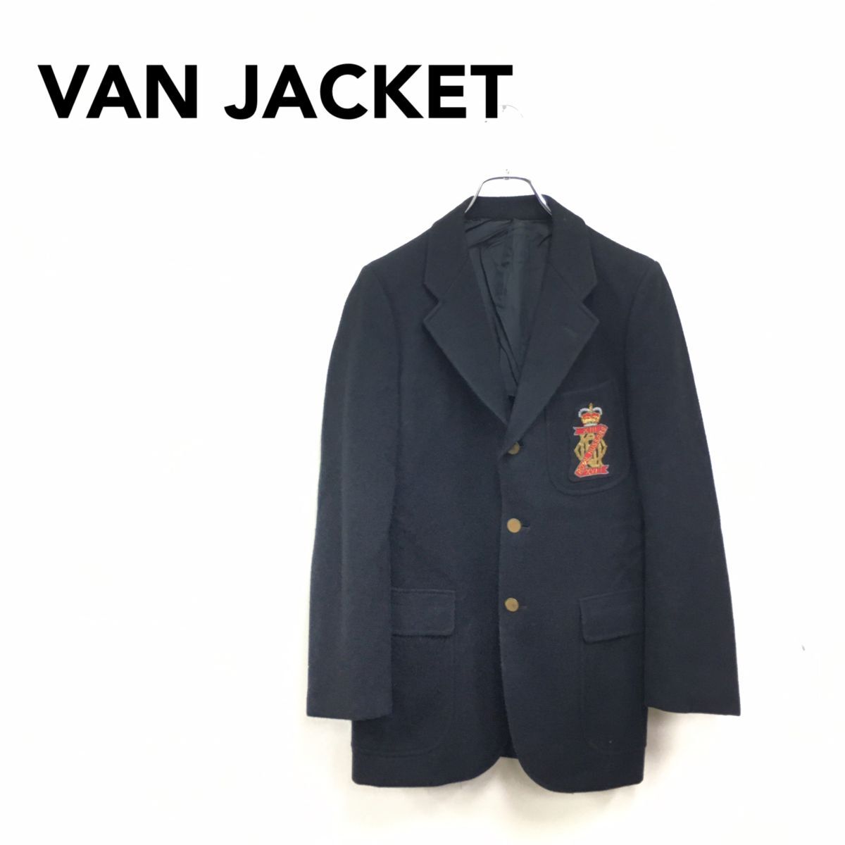 > 2O2581-U◆VAN JACKET ヴァンジャケット ウールブレザー 3Bテーラードジャケット メンズ ミリタリーワッペン レトロ◆size93 黒 ブラック