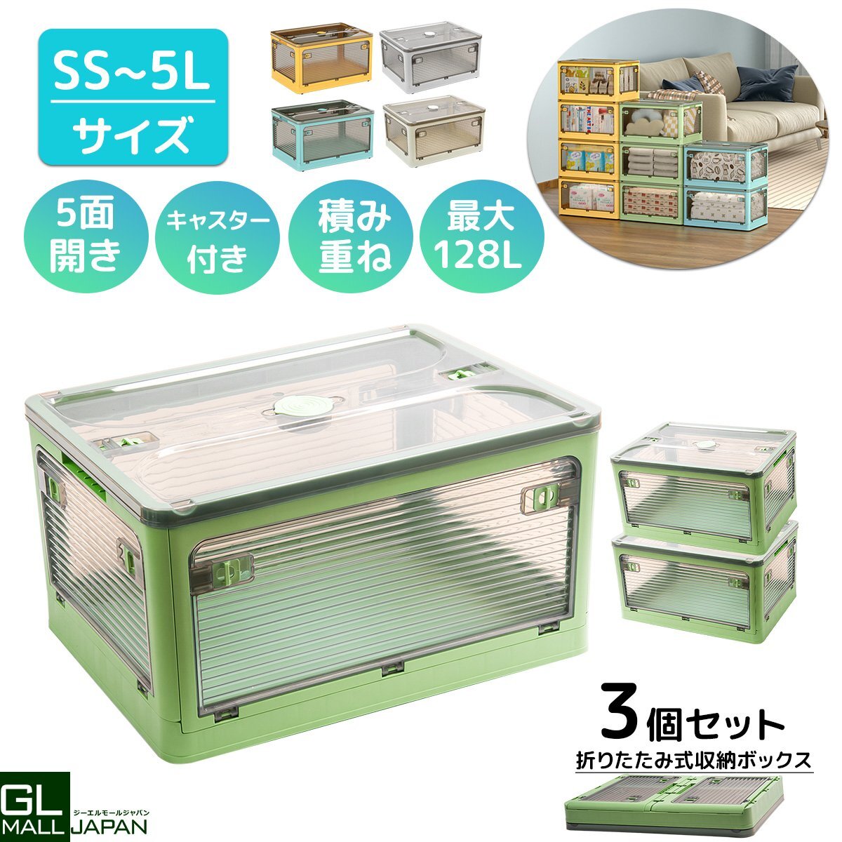 - 【送料無料】3個set 折りたたみ式 収納ボックス 68L 60*42*33cm 収納ケース 蓋付き キャスター付き 透明 衣類収納 3L■5面 ★5色選択