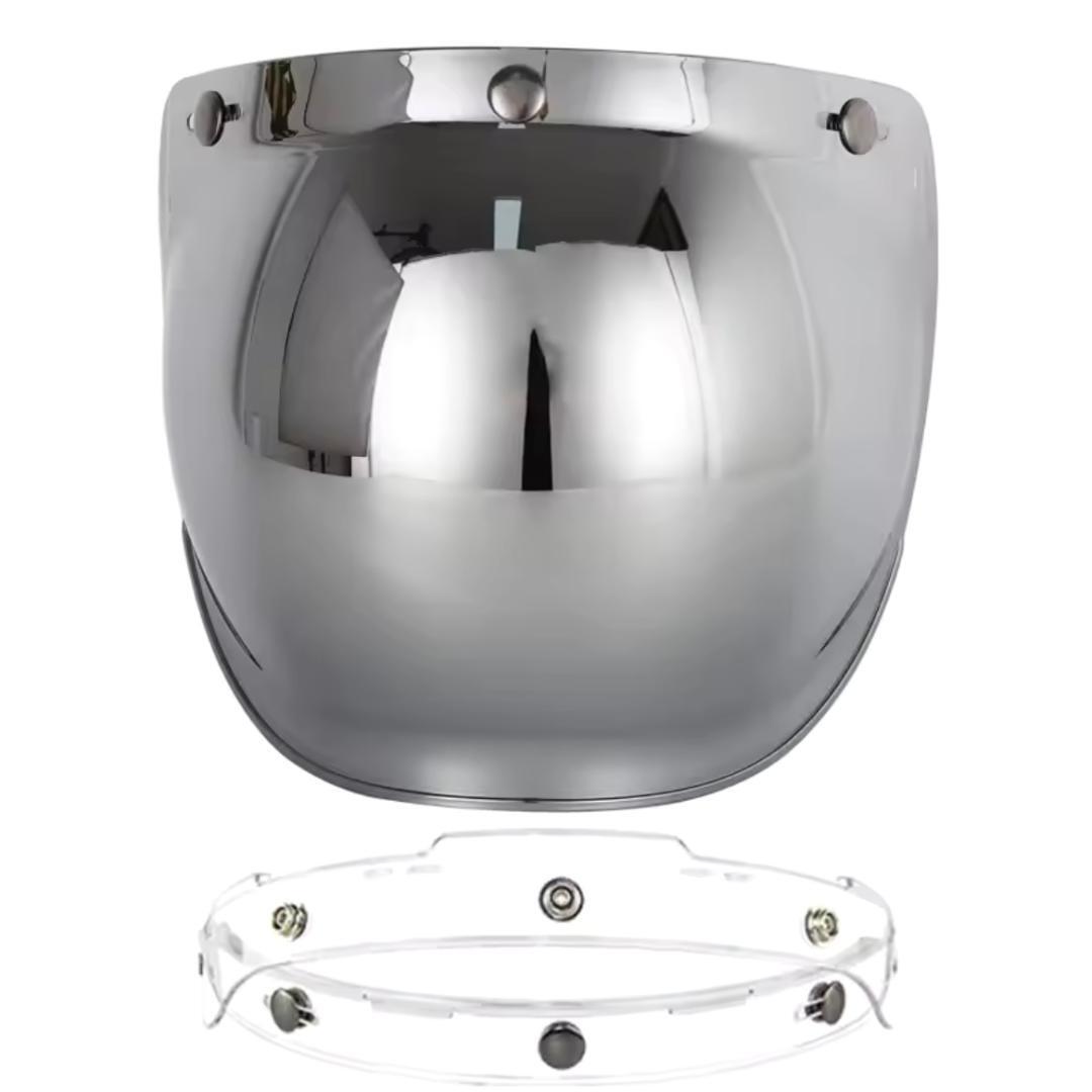 - ジェットヘルメット用 バブルシールド 銀 フリップアップベース付き 汎用 3点スナップ ミラーシールド 管理J5
