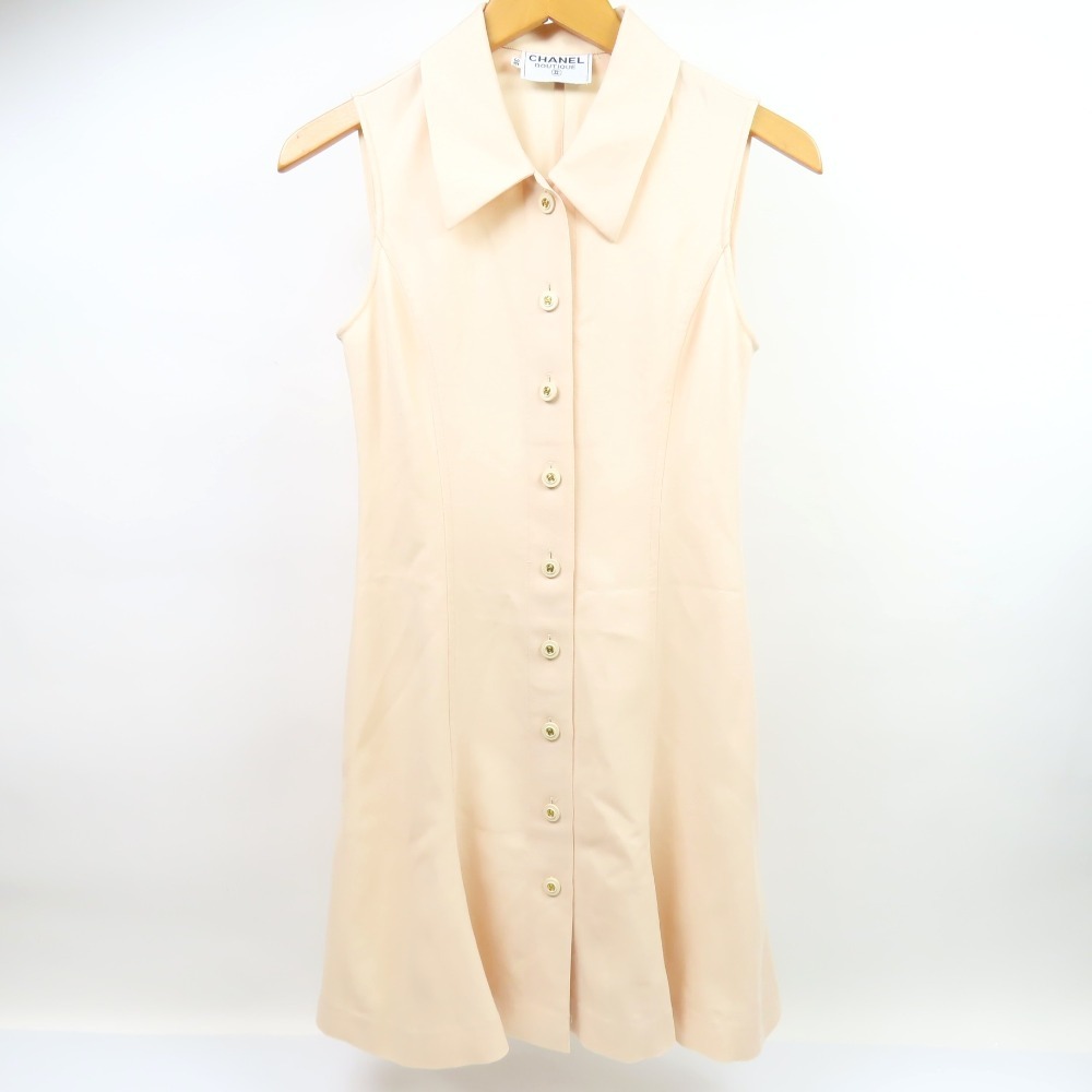 > 203415★1円スタート★CHANEL シャネル 極美品 ノースリーブワンピース ココマーク シャツ 服 36 S 7号 ワンピース ベージュ