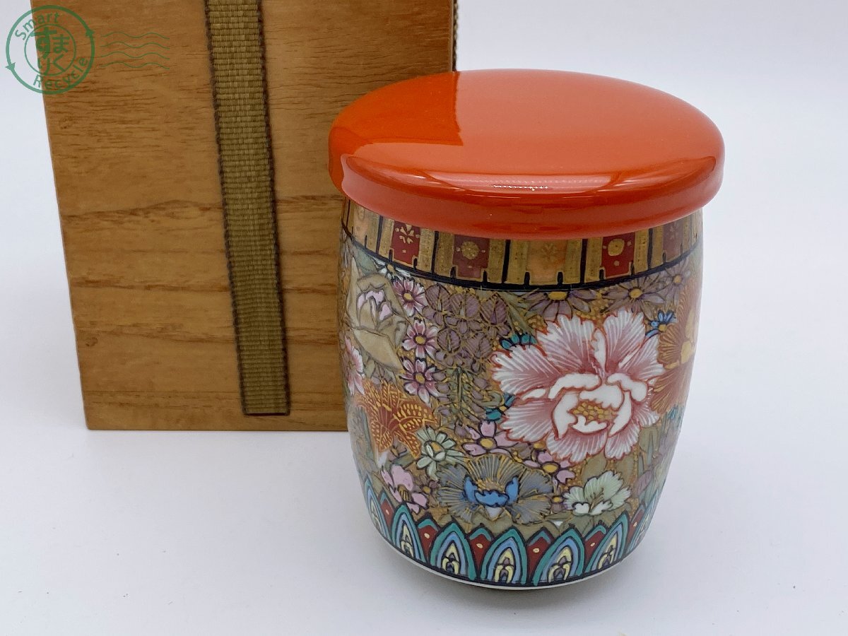 - BJ0707047 * 1円~ 九谷焼 椿山窯 紫紅作 金彩 花紋 湯呑 湯飲み ゆのみ 茶器 茶道具 木箱 蓋つき 花柄 総柄 中古品 used品 21