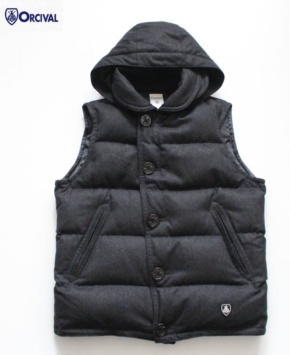- 【 Orcival オーチバル 】ウール フード ダウンベスト 3 チャコール #RC-8755 FNN-BY 定価¥35,200 丸襟 パーカー アンカーボタン