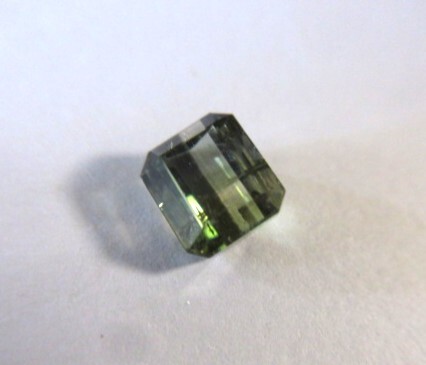 よく見ますと、淡いグリーンとグレーのバイカラーになったトルマリンです。インクルージョンがありますが、透明感とテカっとしたてりがあります。非加熱。