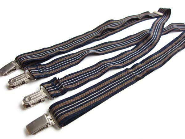 - PELICAN/伸縮素材/ストライプ柄/クリップ式/X型 サスペンダー/ 紺系ベース/メンズ/Xバック/ブレイシーズ/ビジネス/D78-51-0075