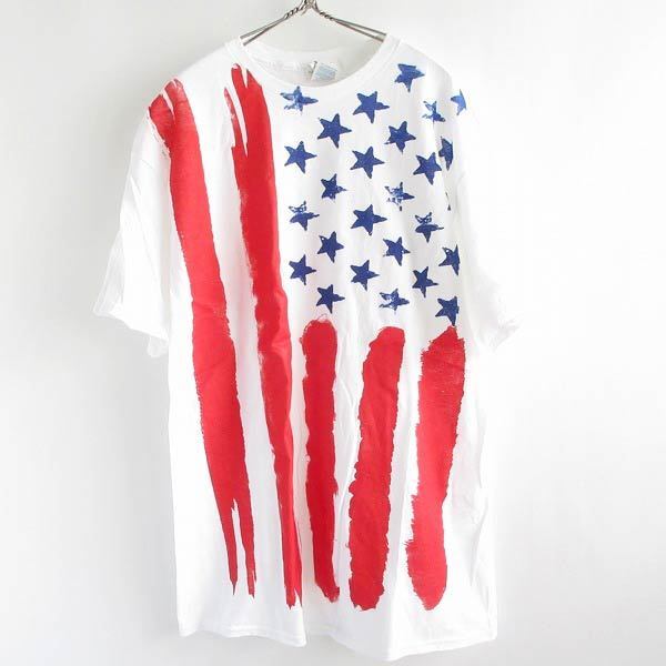 > 新品 星条旗モチーフ 半袖Tシャツ 白ベース XL DELTA PRO WEIGHT 100%コットン 未使用品 デッドストック/D143-01-0038ZVW