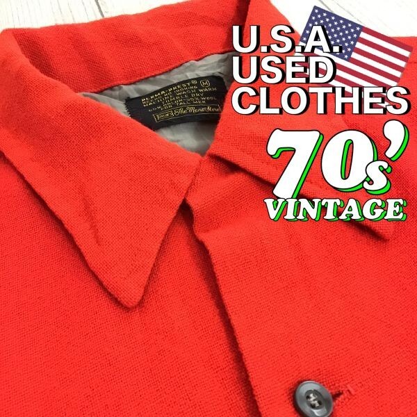 - ★本場USA直輸入★60's~70's vintage★【Sears シアーズ】PERMA PREST 芯入 長襟 長袖 ウール混シャツ[メンズ M]赤 ストア ブランド K-437