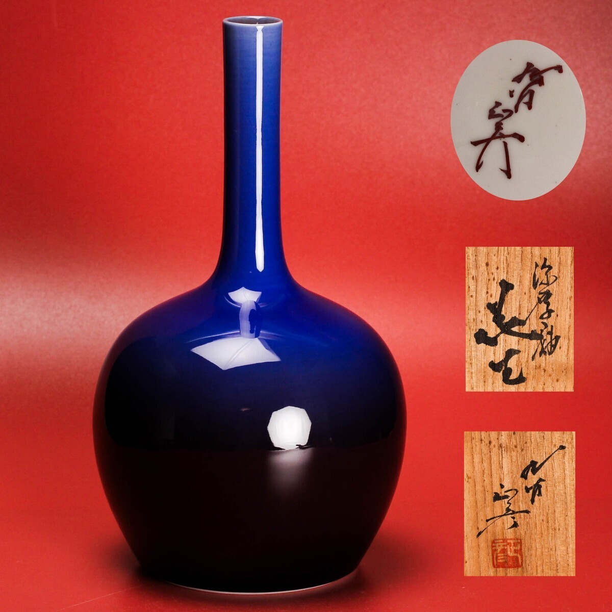 - 人間国宝 三代 徳田八十吉(正彦) 深厚釉花生 共箱 栞 本物保証