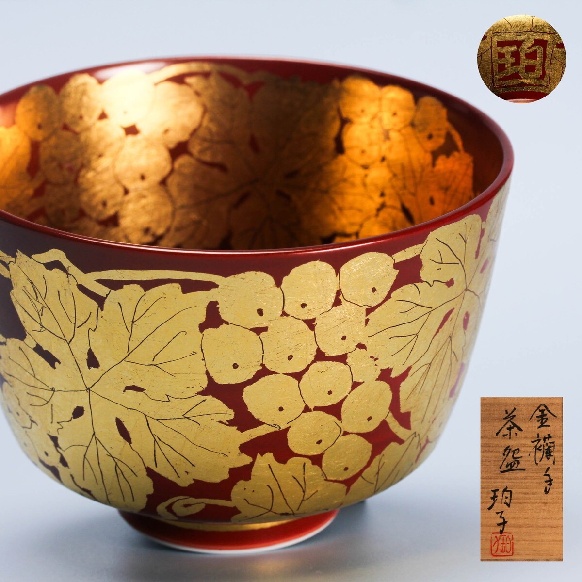 - 小野珀子 金襴手葡萄文茶碗 共箱 共布 栞 茶道具 本物保証