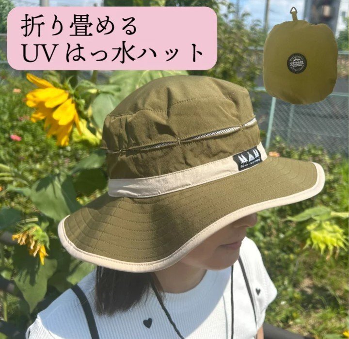 - サファリハット 帽子 UVカット はっ水 レディース あご紐付き 紫外線対策 折りたためる 収納袋一体型