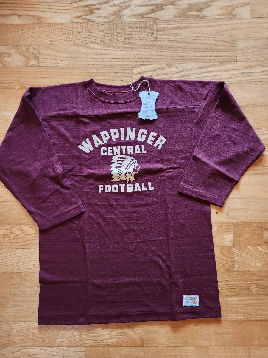 > 新作 送料込★WARE HOUSE ウエアハウス 4063 7分袖F.B.T. フットボールTシャツ WAPPINGER インディアン アメカジ ボルドー 40