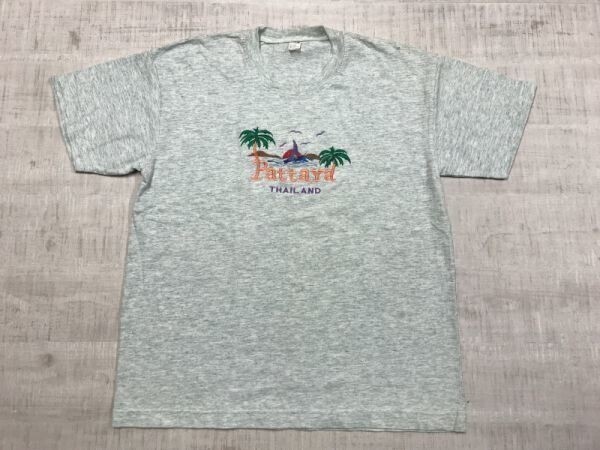 > タイ パタヤ Thai Pattaya 半袖Tシャツ ロゴ刺繍 海 椰子の木 お土産 スーベニア オールド レトロ メンズ STANDARD グレー