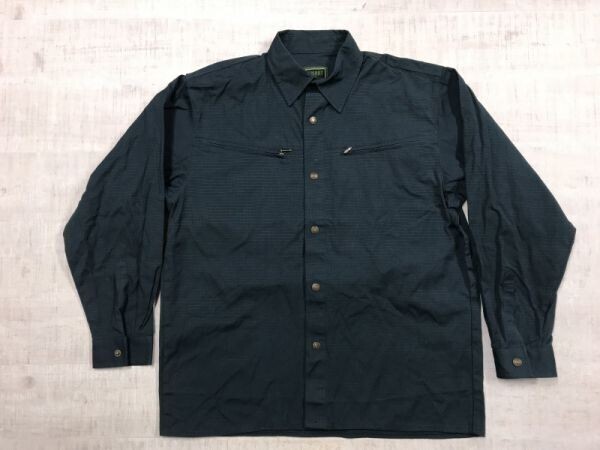 > スマート&タフ SMART&TAFF HEYBEAU オールド ワーク 古着 ジップポケット リップストップ シャツ ジャケット メンズ コットン100% M 青