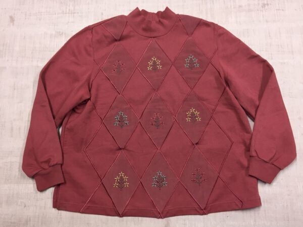 > ALFRED DUNNER PETITE アルフレッドダナー オールド レトロ古着 ダイヤ柄 モックネック スウェット トレーナー レディース 刺繍 ピンク