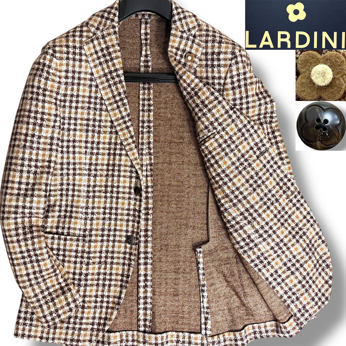 > J7355 美品 ラルディーニ フランネルツイード チェック柄 テーラードジャケット ブラウン 46 LARDINI