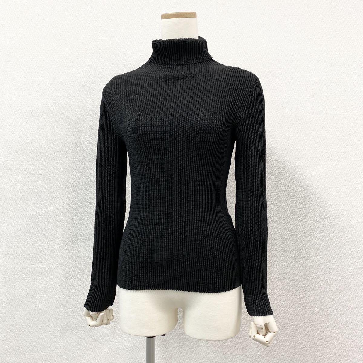- oj29② SPECCHIO スペッチオ 長袖トップス カットソー プリーツデザイン 伸縮性◎ タートルネック ブラック 40 Lサイズ レディース 女性服