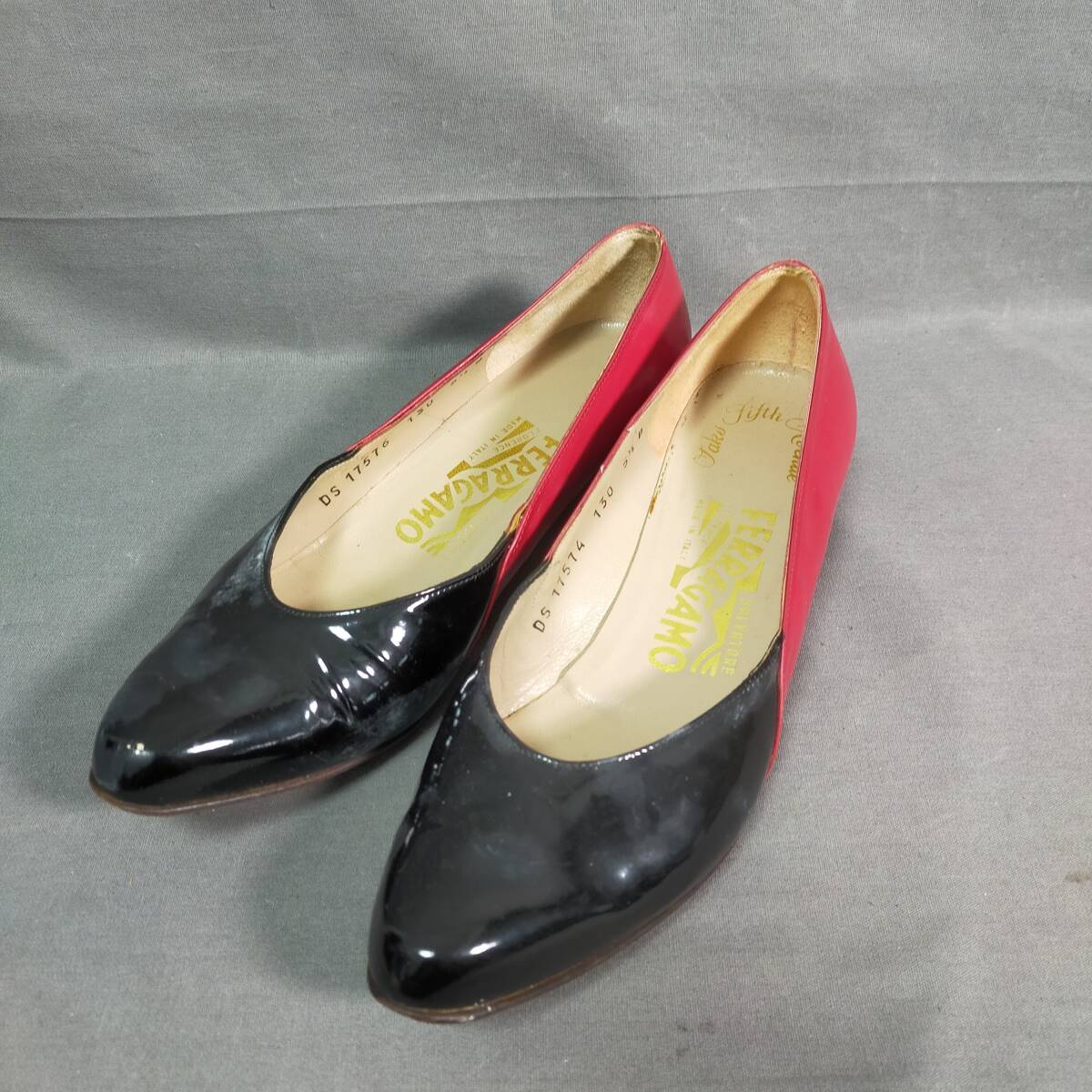 - 5710/28 GJ72347 Salvatore Ferragamo フェラガモ パンプス ツートンカラー エナメル サイズ5 1/2 シューズ used 現状品