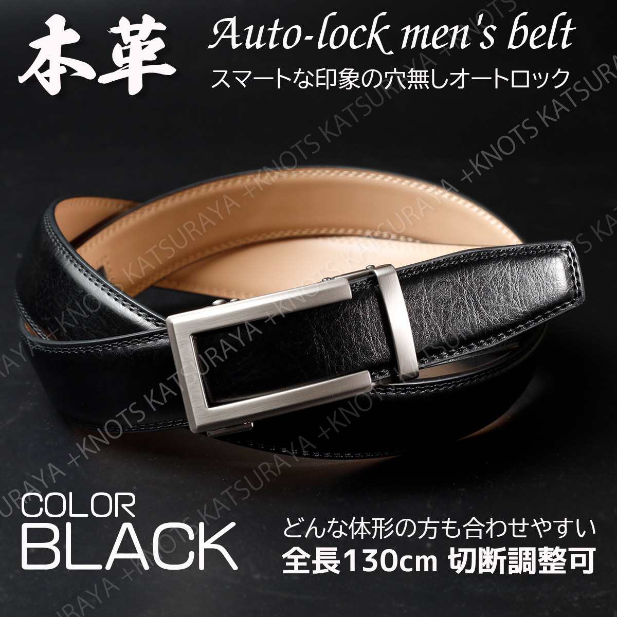 - 本革 オートロック メンズ ベルト★ブラック黒★レザー ビジネス スーツ カジュアル 穴無し 自動 長い 長め 大きいサイズa438