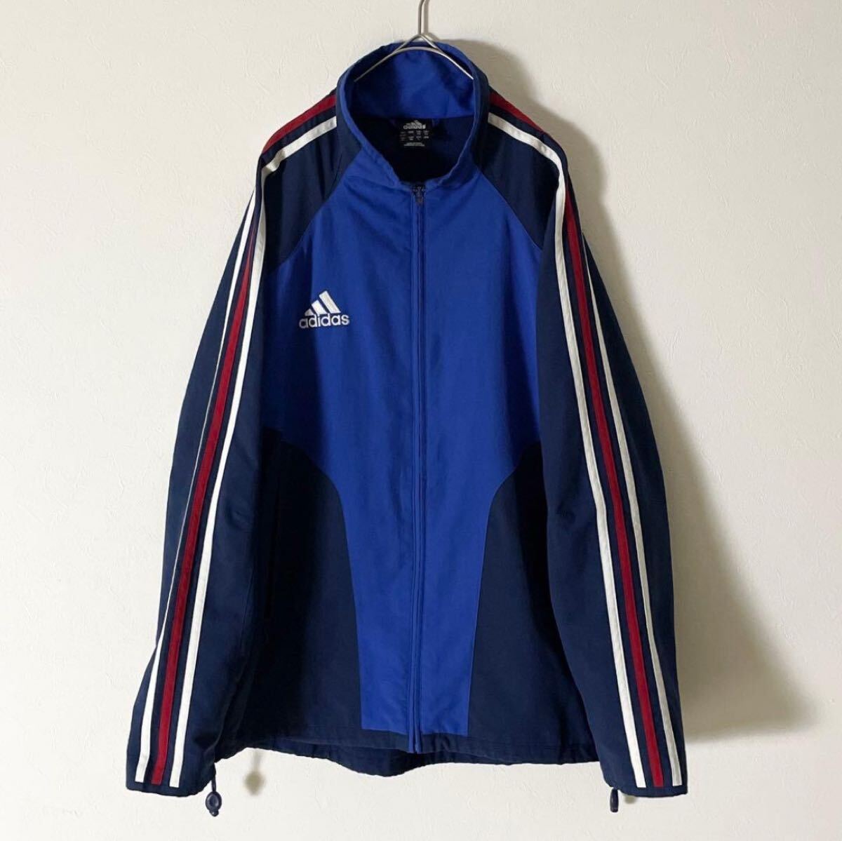 > 【希少・美品】00s adidas アディダス トラックジャケット 刺繍ロゴ スリーストライプ Y2K ジャージ ブルー Lサイズ スポーツ メンズ