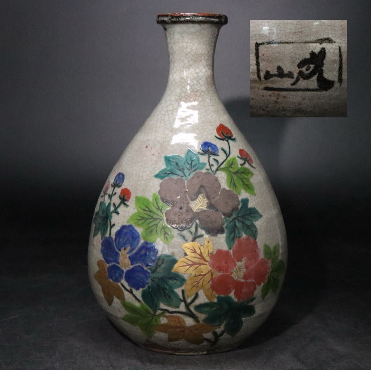 - 乾山 銘 尾形乾山 色絵 ・ 金彩 花図 徳利 / 乾山焼 花器 壺 花瓶 煎茶道具 .B1309