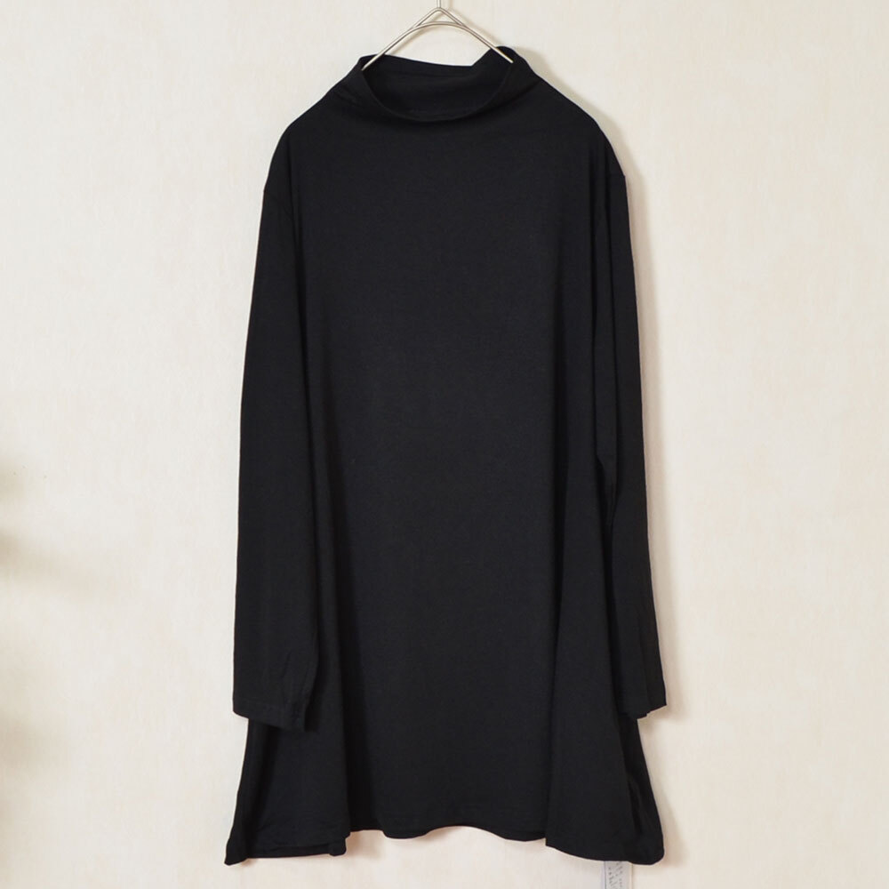 - 新品☆L〜LL 大きいサイズ ボトルネック カットソー チュニック レディース フレア オシャレ 長袖 秋冬/ブラック 黒/メール便可/C01-472