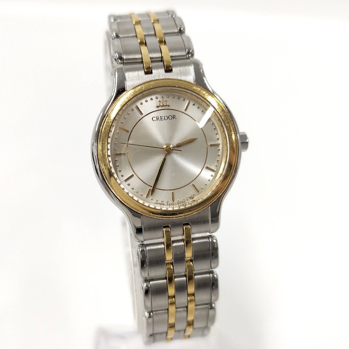 > ●セイコー SEIKO クレドール ベゼル 18KT/SS レディース腕時計 シルバー文字盤 7371-0040 クォーツ 中古[ne]um5