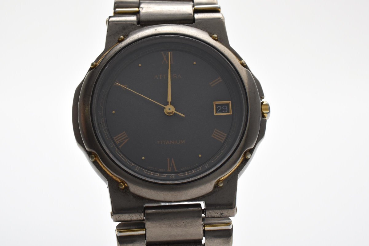 > シチズン アテッサ 3810-451694 デイト ラウンド チタニウム クォーツ メンズ 腕時計 CITIZEN