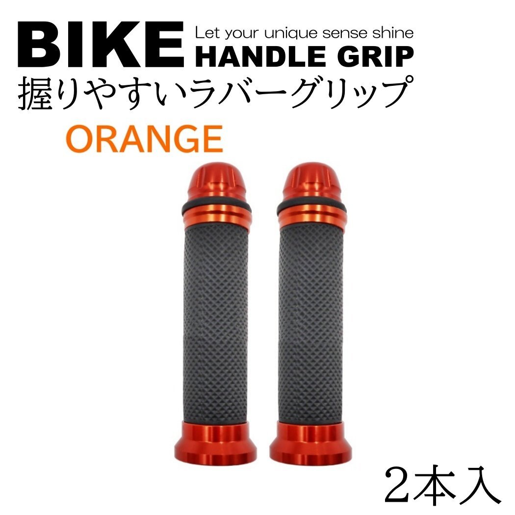 > オレンジ バイク グリップ ハンドル 原付 バイクグリップ ハンドルグリップ カスタムグリップ カバー アルミ 汎用 2本 左右セット アルミ