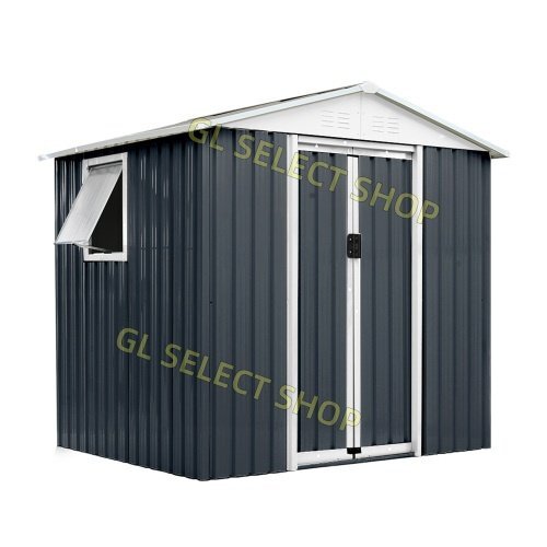 - 【可動棚&すべり出し窓付き】物置 屋外 スチール 倉庫 床材補強フレーム付き 物置き おしゃれ 防さび ベランダ 防水 ドア【ブルーグレー】