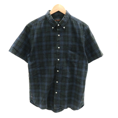 - ビームスプラス BEAMS+ カジュアルシャツ 半袖 チェック柄 L 紺 ネイビー 緑 グリーン /YK34 メンズ