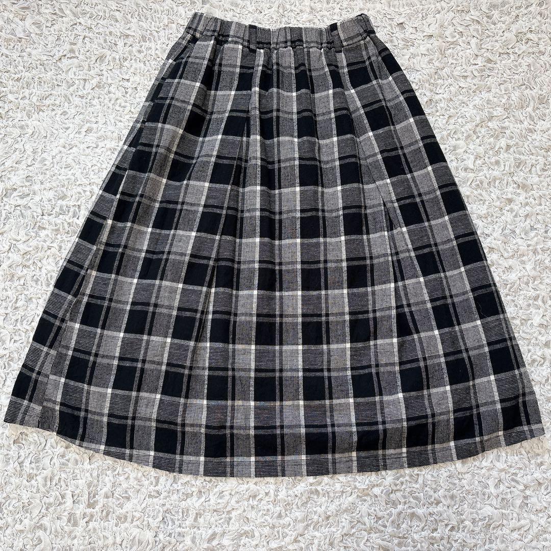- Sunny clouds サニークラウズ ロングスカート Lサイズ ゆったり チェック ブラック ウエストゴム 秋冬 シャトルノーツ生地