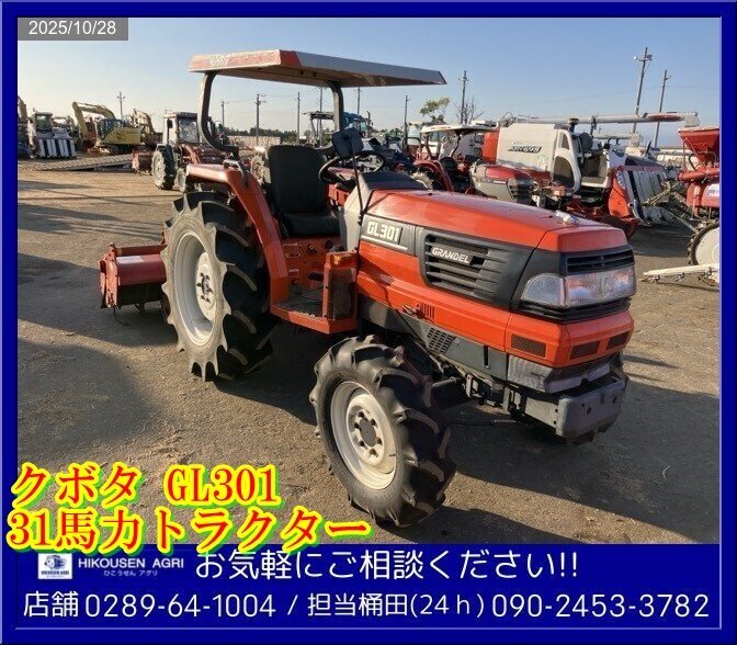 > ★★クボタ:GL301:トラクター:31馬力:1万円スタート:自動水平:キャノピー:4WD:ロータリー:M177:栃木:配送可:GL301:HIKOUSEN