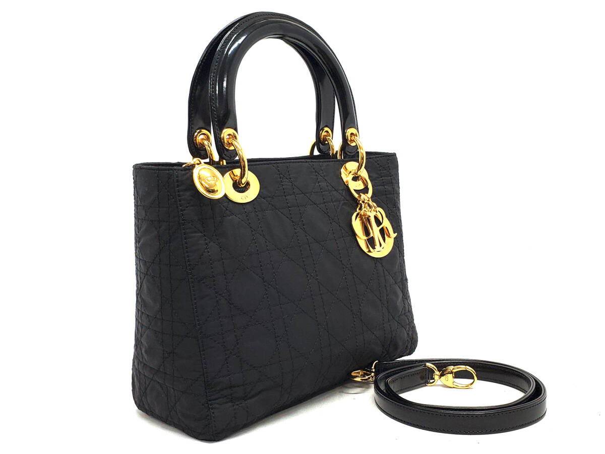 - KD2925-508910◆極美品【クリスチャンディオール】 レディディオール・2wayハンドバッグ・カナージュ◆ショルダー◆ナイロン&エナメル・黒