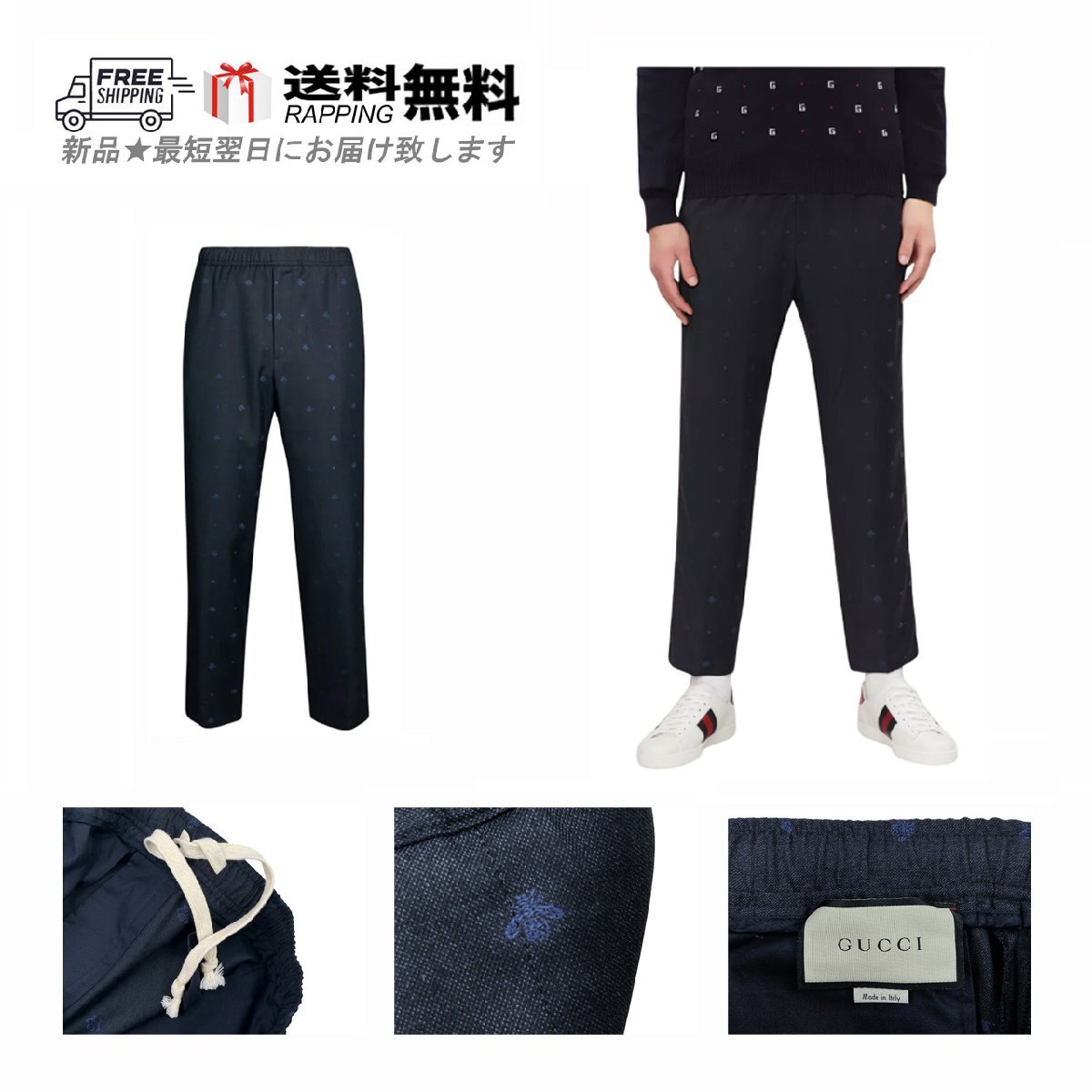 - L532-48.. GUCCI グッチ パンツ リブパン 楽パン スポパン ボトムス ビー ハチ 蜂 ウール イタリア製 ★ ネイビー
