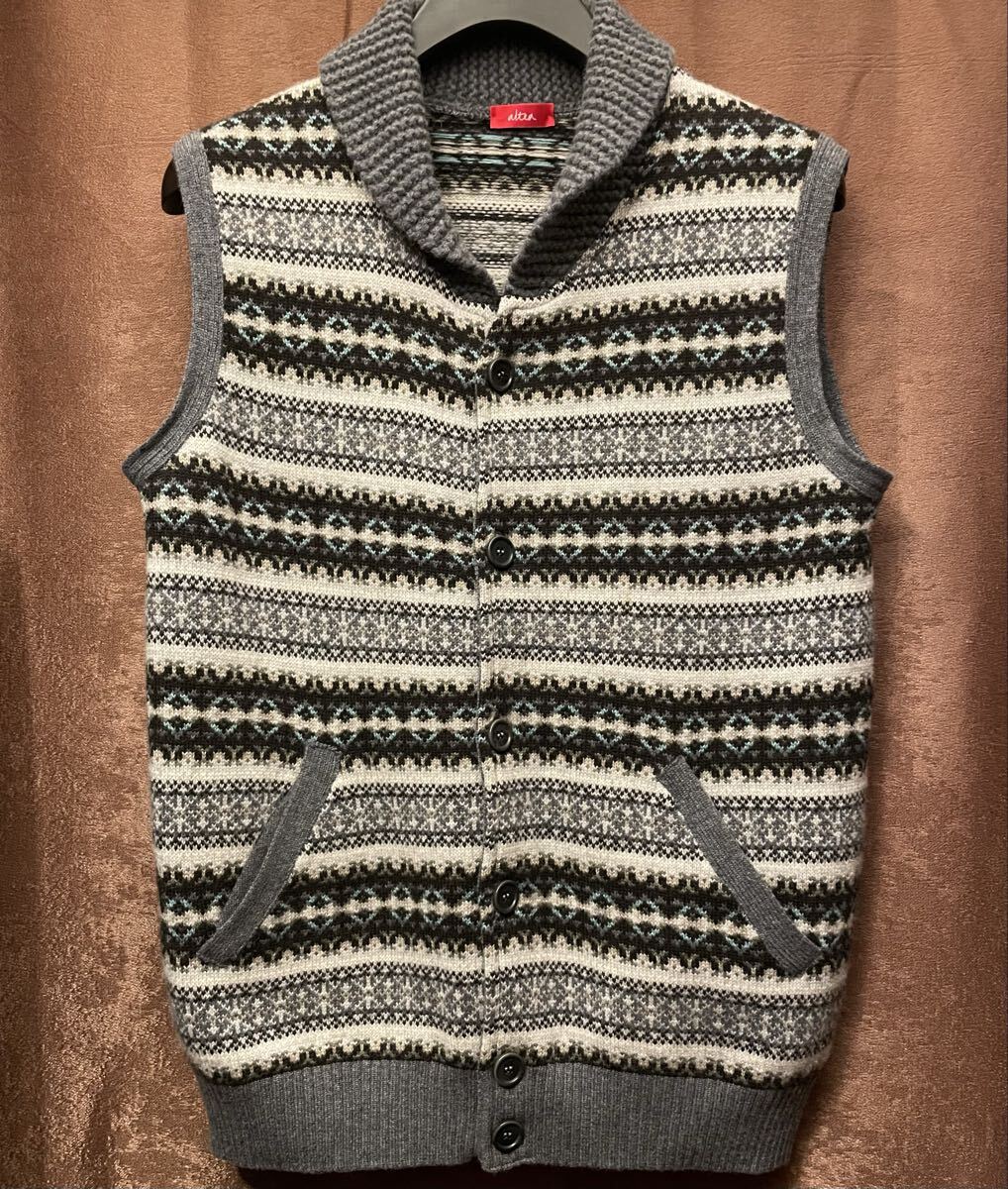 - MADE IN ITALY製 altea ショールカラー ウールカシミヤベスト マルチカラー Mサイズ アルテア イタリア製 ベスト 総柄 ニット ニットベスト