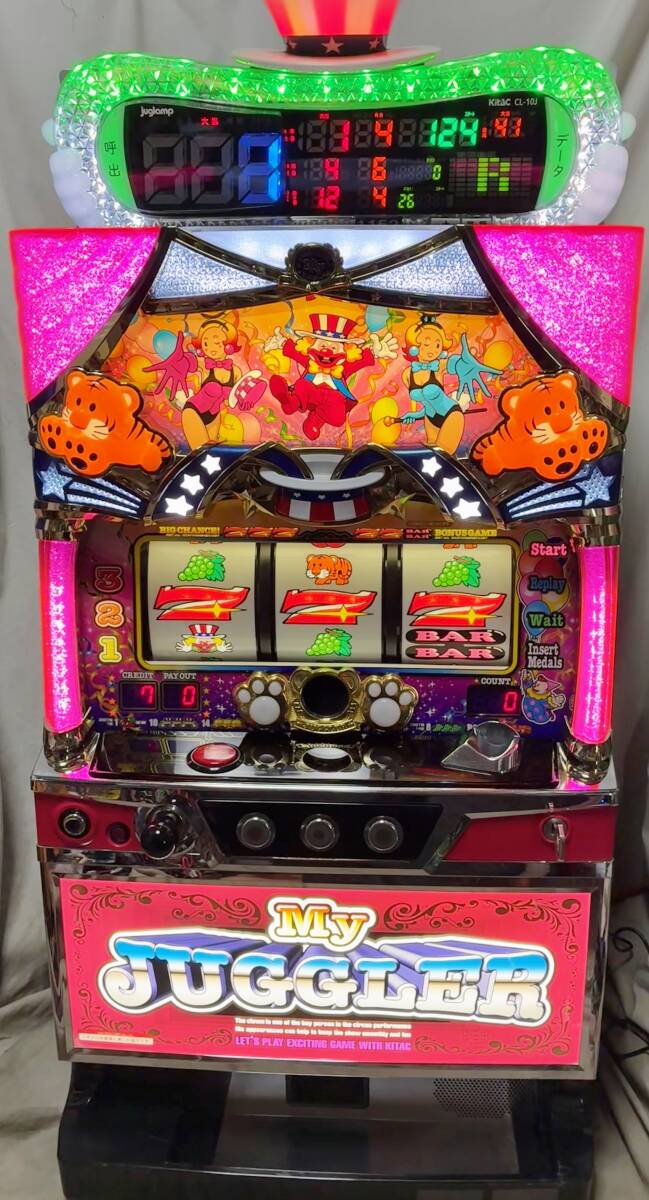 > S マイジャグラーV KD【現行6号機】(データカウンター&不要機取り付け済)訳あり(外装キズや補修跡)スロット実機 家庭用電源対応機