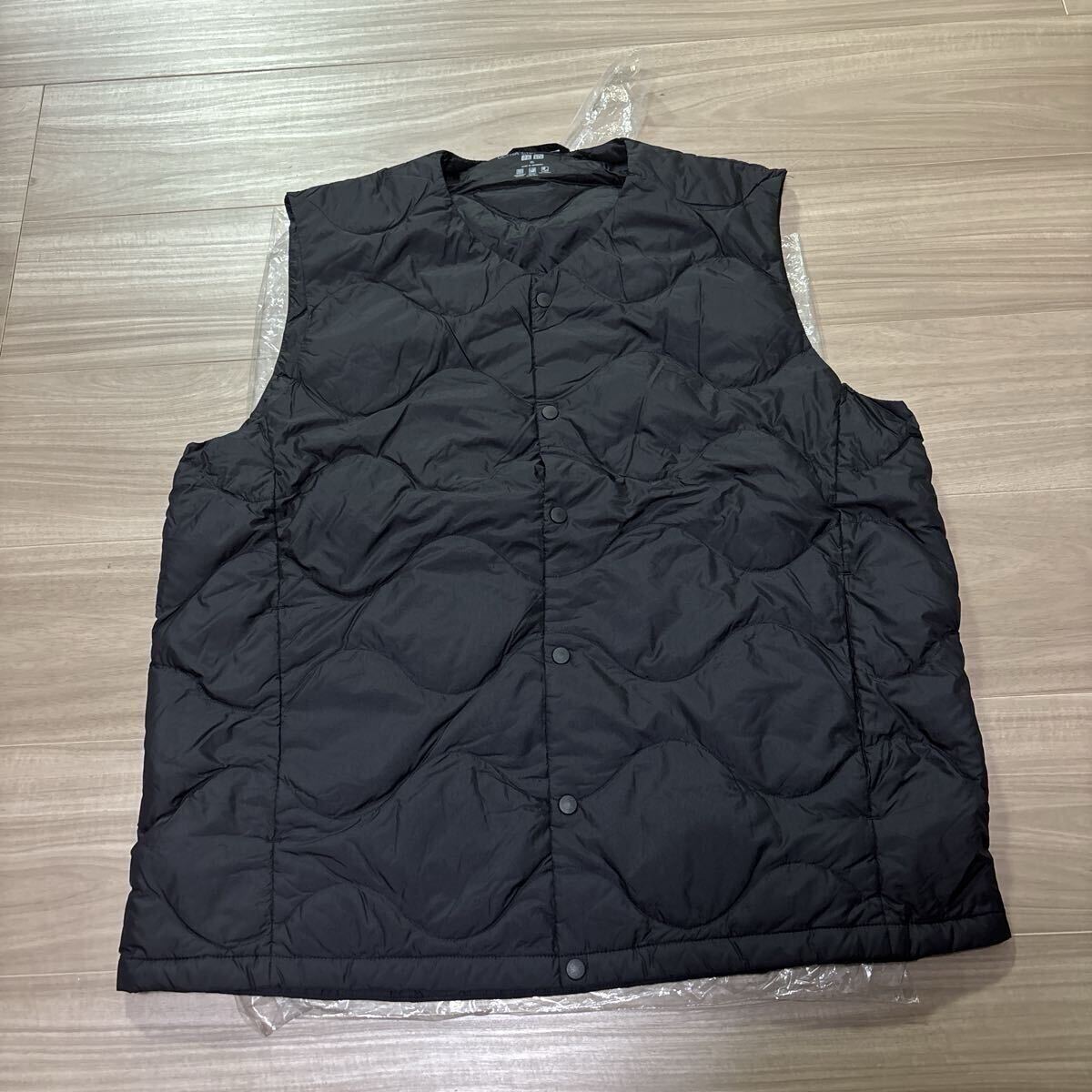 > 未使用 メンズ XL UNIQLO ユニクロ ULTRA LIGHT DOWN ウルトラライトダウン ベスト ブラック 黒 ウエーブキルト ウェーブキルト
