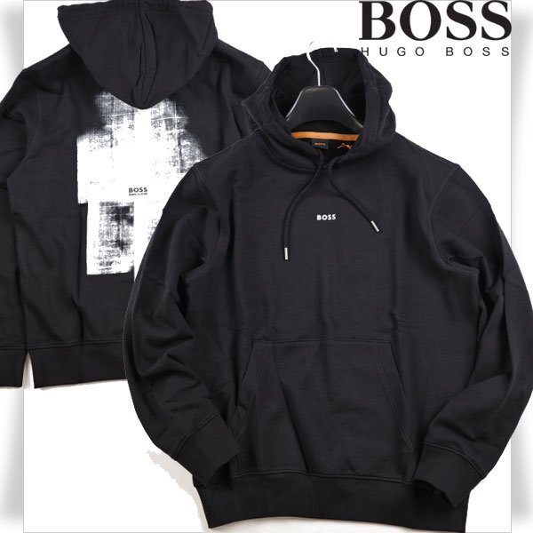 - 新品1円~★定価3.4万 BOSS ボス メンズ 最高級ライン コットン綿 ロゴ プルオーバーフーディーL ヒューゴボス パーカー 黒 本物◆A3494◆