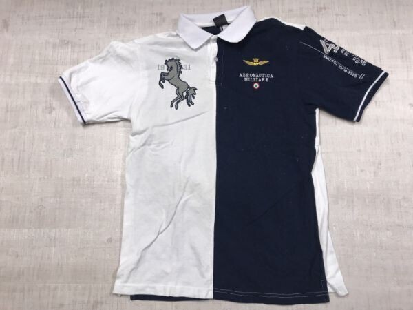 > AERONAUTICA MILITARE アエロナウティカ・ミリターレ 伊ブランド アメカジ ミリタリー バイカラー 鹿の子 半袖ポロシャツ メンズ XL 紺/白