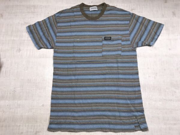 > YACHTING WORLD ヨッティングワールド サーフ アメカジ ジャガード ボーダー トリム リンガー 半袖Tシャツ カットソー メンズ 紺/茶色