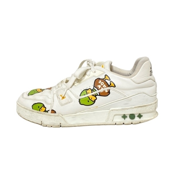 > ルイヴィトン LOUIS VUITTON スニーカー 6 1/2 LVトレイナー・ライン スニーカー レザー 白×ライトグリーン×マルチ メンズ BM0281 靴