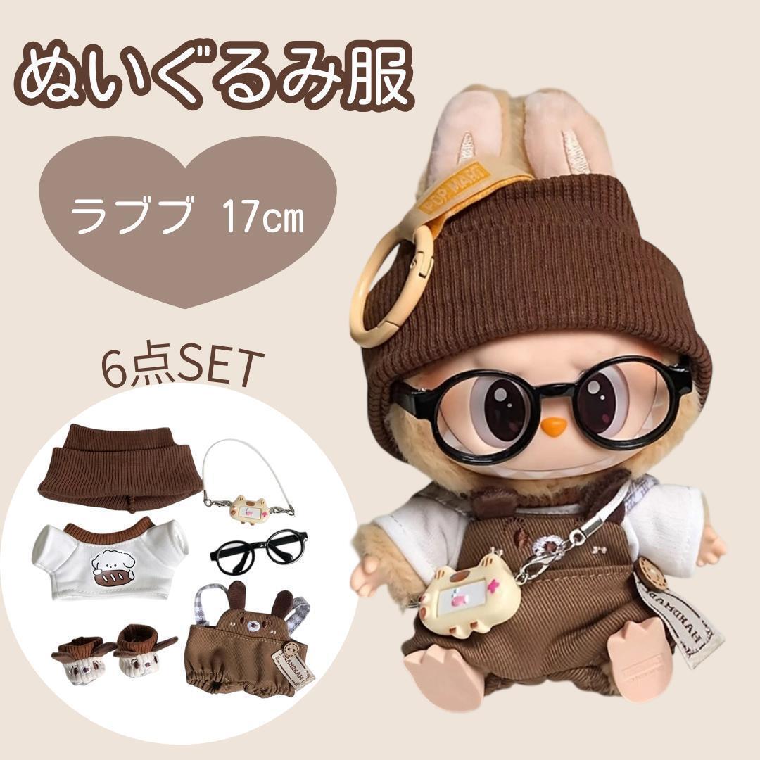 - ラブブ ぬいぐるみ服 17cm 衣装 着せ替え 6点セット ブラウン ぬい服