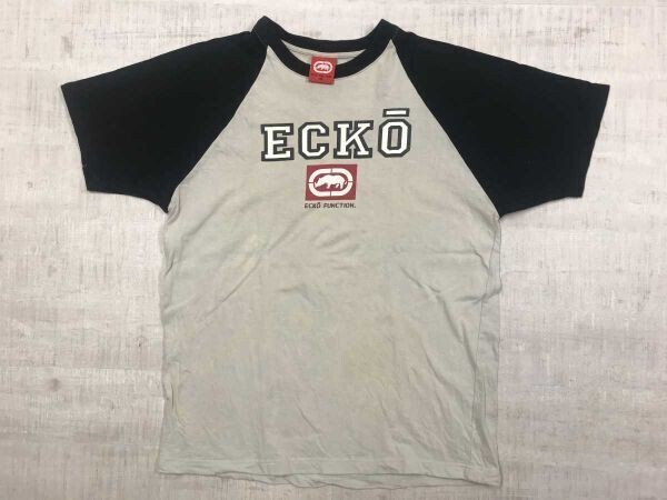 > ECKO FUNCTION エコーファンクション オールド 00s ストリート ヒップホップ ラグラン 半袖 Tシャツ メンズ コットン100% XL 黒 ベージュ