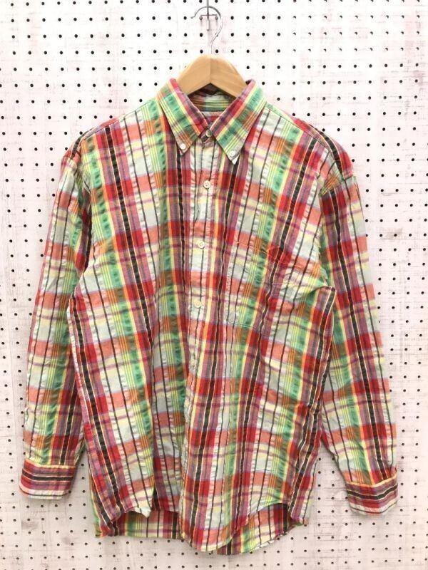 > OUTDOOR HOLIDAY メンズ オールド レトロ 古着 アメカジ アウトドア シアサッカー マドラスチェック 日本製 ボタンダウン長袖シャツ L
