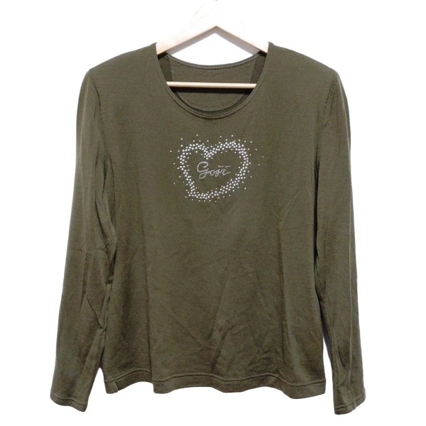 > イタリヤ 伊太利屋/GKITALIYA 長袖セーター/ニット サイズ11 M - カーキ×シルバー レディース ラインストーン/スタッズ トップス