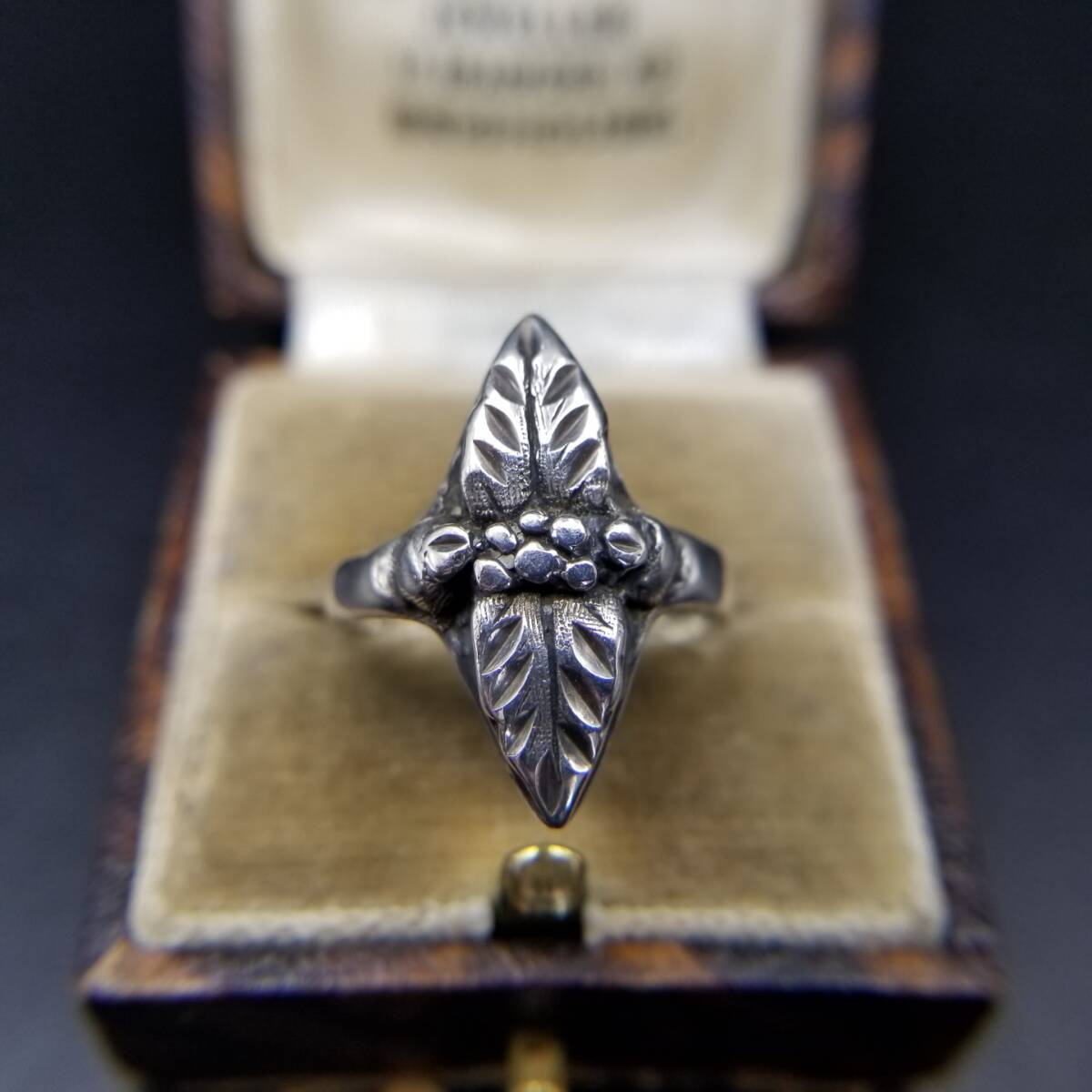 - 葡萄の葉 木の実 925 シルバー ヴィンテージ フルーツ リング 銀 指輪 サウスウェスタンスタイル マーキスシェイプ Y24-X