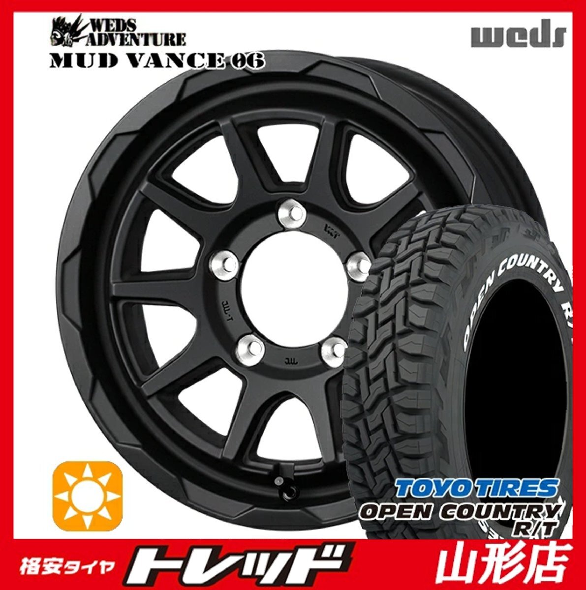 - 山形店 新品 夏タイヤホイールセット Wedsマッドヴァンス06 16インチ6.0j 5H139.7 -5 FMBK TOYO オープンカントリーR/T 225/70R16 2025年製