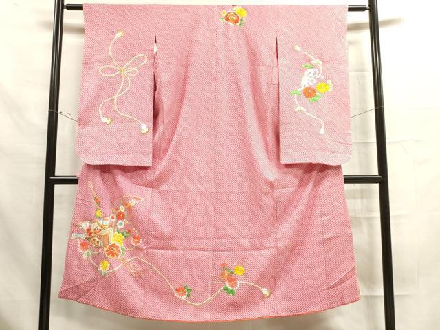 - 平和屋着物[]七五三 女の子 7歳 祝着 四つ身 駒刺繍 総絞り 御所車飛鶴花文 逸品 DAAR1403jm
